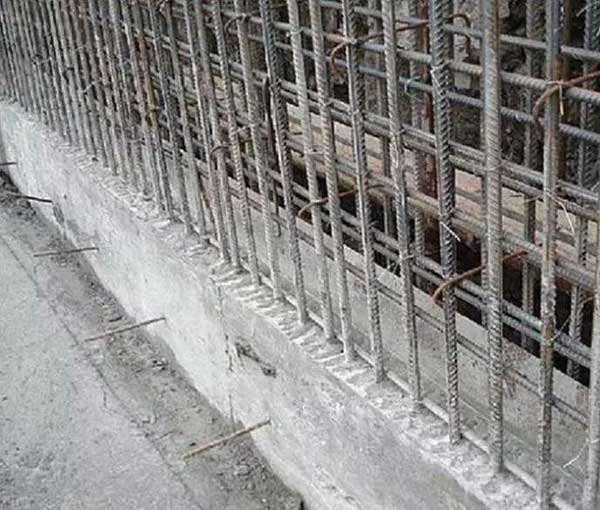 为支设外墙板模板,在底板上埋设支模钢筋,施工后在底板上表面切割钢筋,由于钢筋没有保护层,形成化学腐蚀,造成严重渗水。